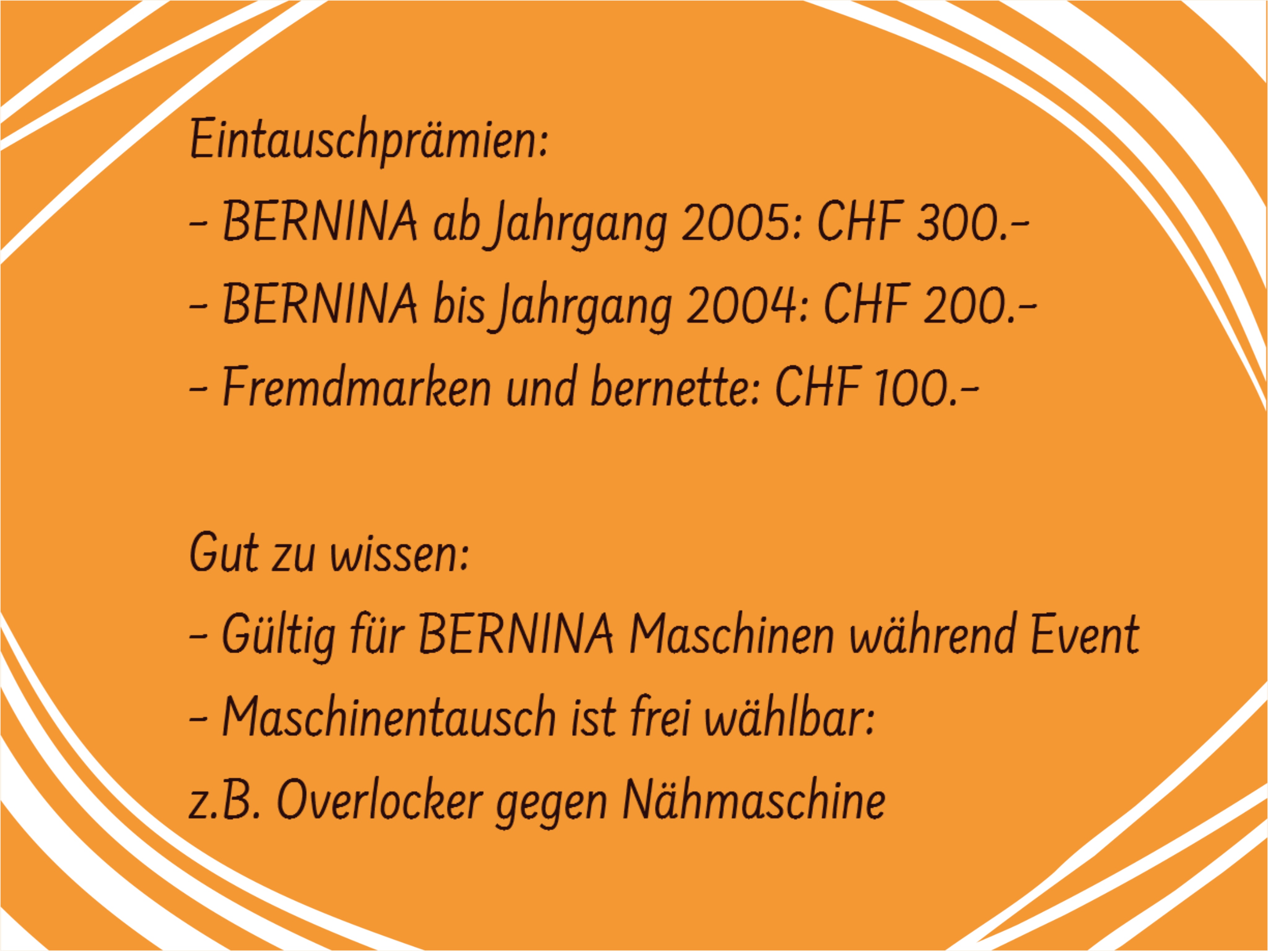 Bis zu CHF 300.– Preisvorteil beim Tausch Ihrer alten Maschine gegen eine neue BERNINA!